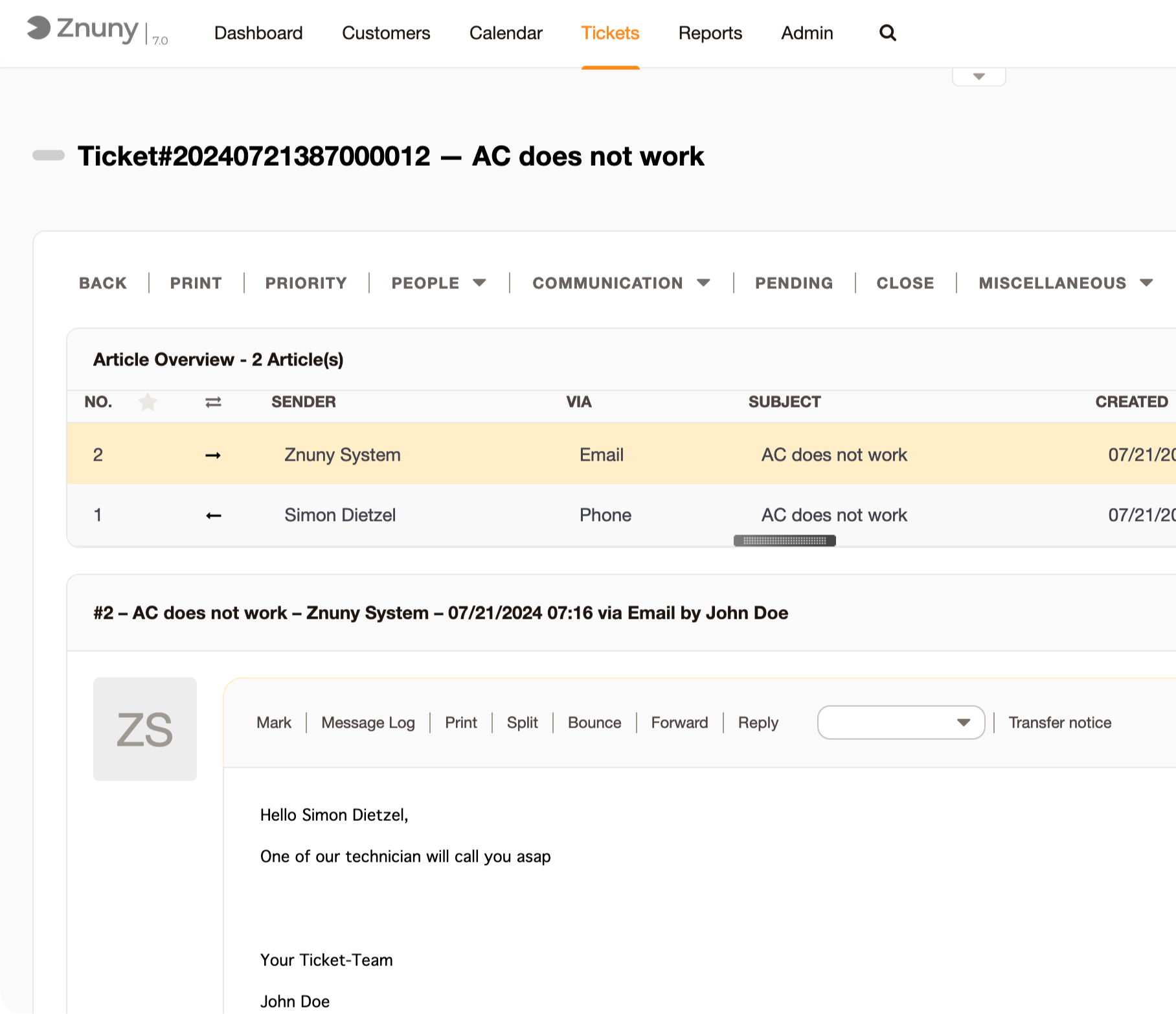 Znuny provides all the tools and functions you need to implement and provide exactly the service management you need, whether it's IT, customer support, or anything else.