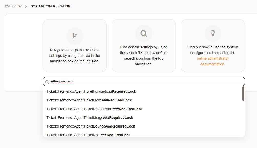 Locking Mechanism: By implementing the lock function on important screens, we ensure exclusive access to critical functions like group assignment (queue move) or answering a customer (email reply). For instance, a lock prevents simultaneous emails on the same ticket by different agents. Which screens require a lock can be found in the system configuration by searching for ##RequiredLock.